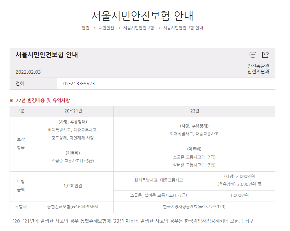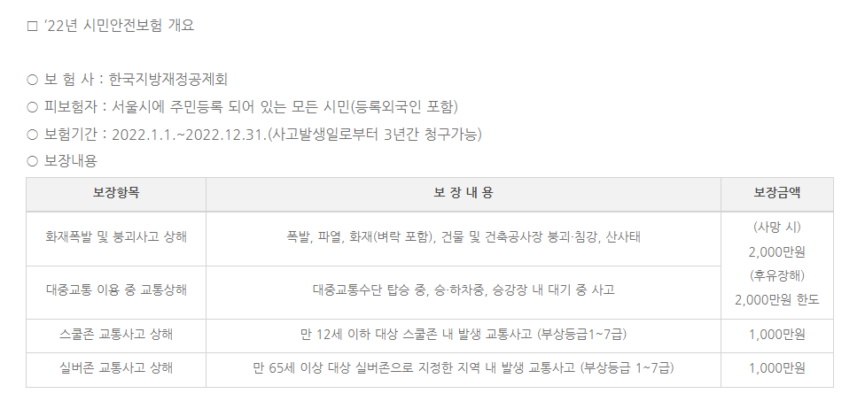 서울 시민안전보험 안내